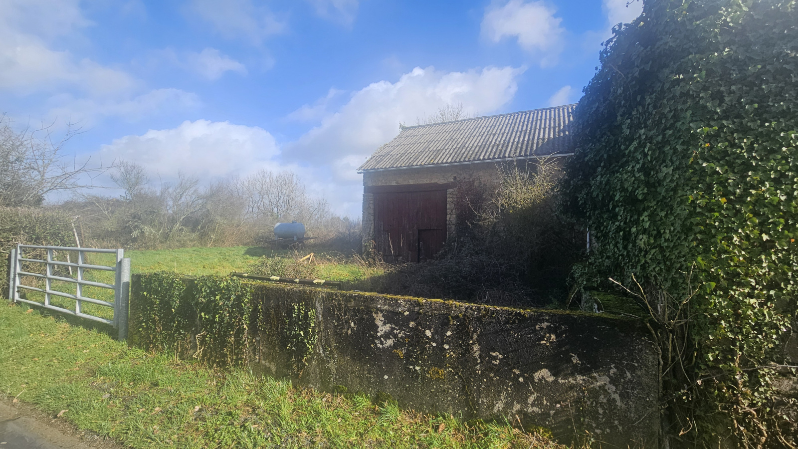 Entourée de 1,5 hectare de terrain, elle est idéale pour un projet de stockage, un espace pour vos animaux ou simplement pour profiter du calme de la campagne