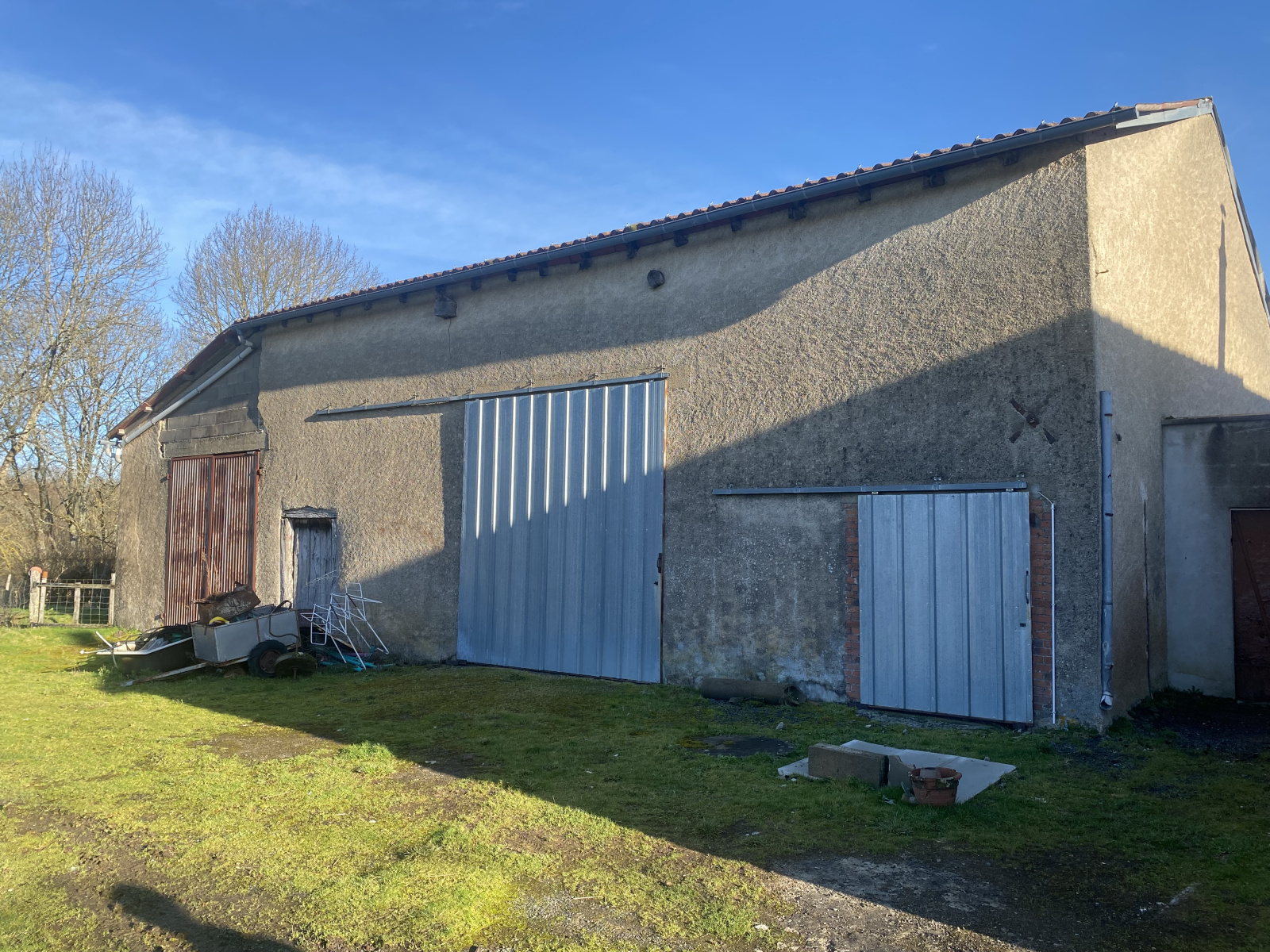 Grange avec garage d'environ 100 m² et terrain d’environ 4 000 m².