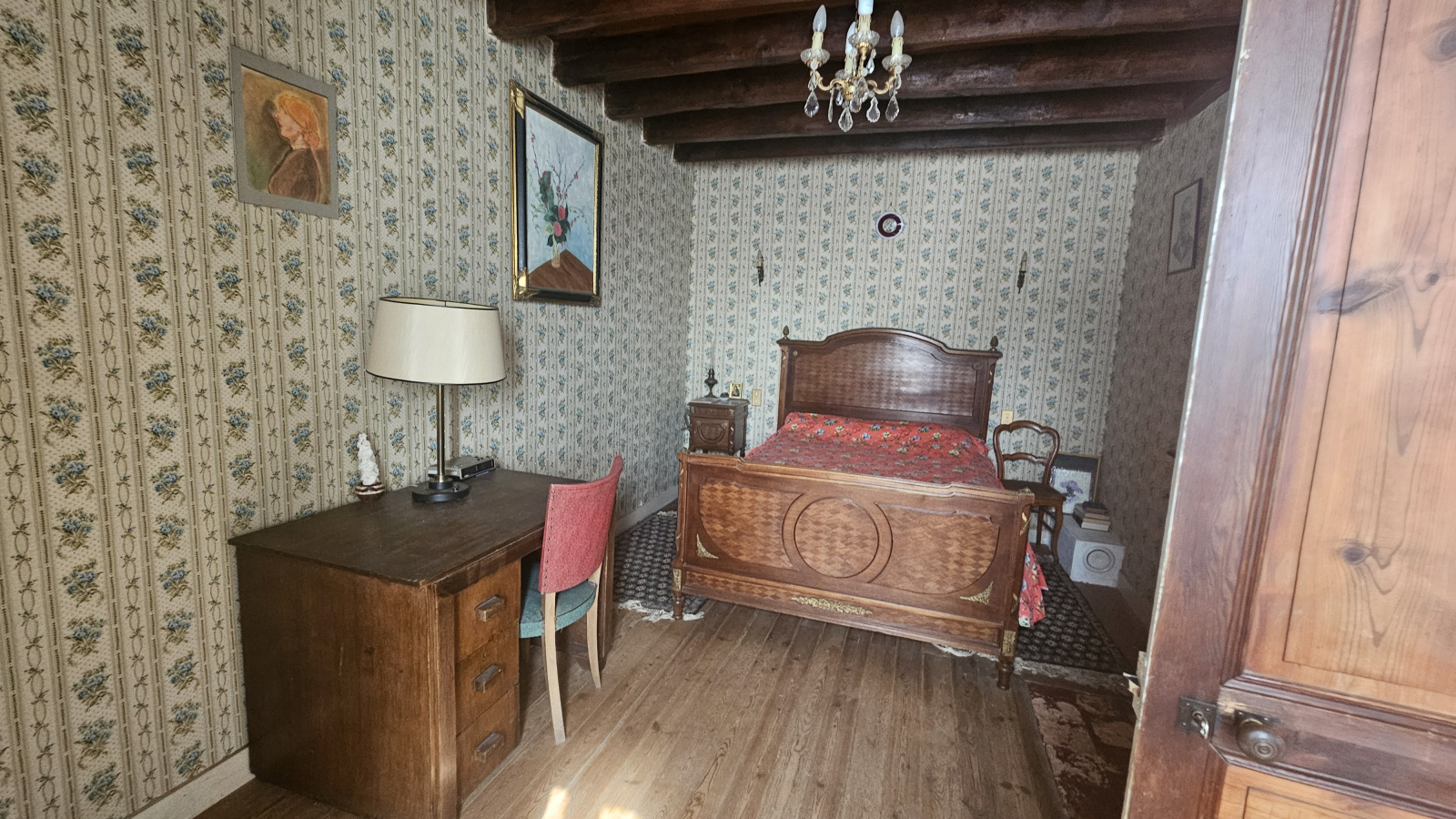La maison dispose de pièces lumineuses et de beaux volumes, avec le charme de l’ancien à valoriser : poutres, parquets anciens, potentiel d’agrandissement ou de modernisation selon vos envies.